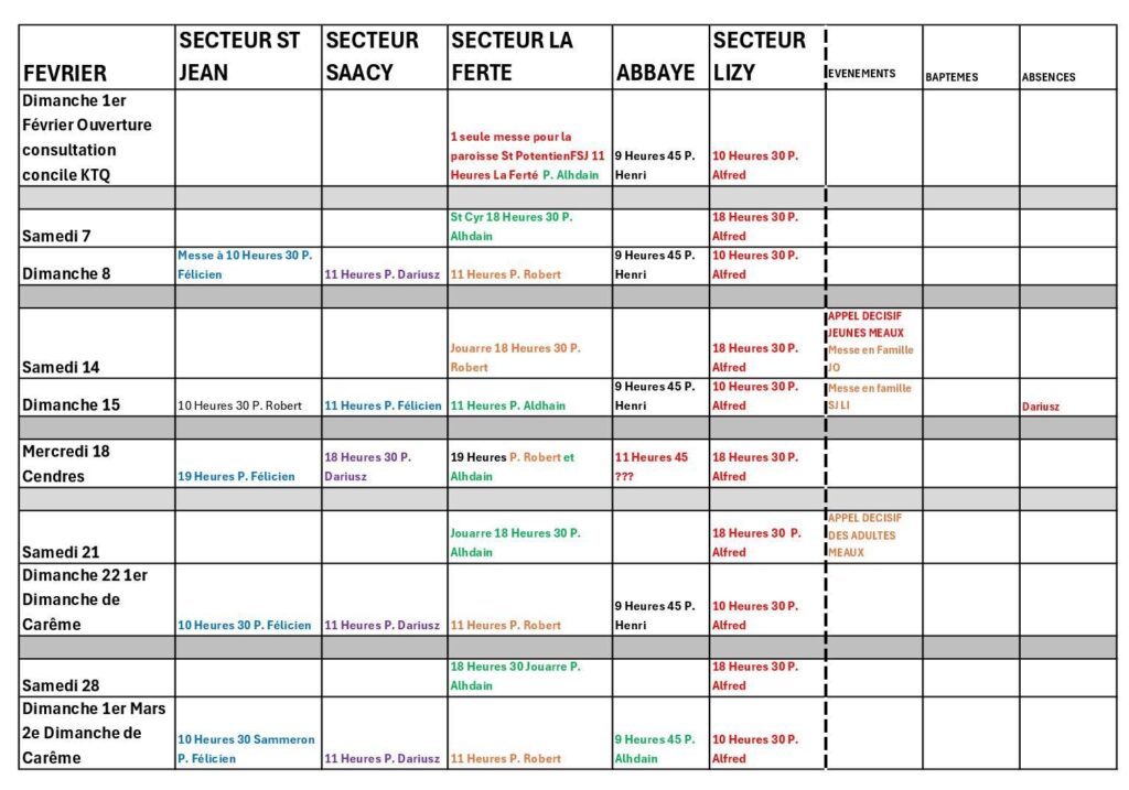 MESSES ET CELEBRATIONS FEVRIER 2026
