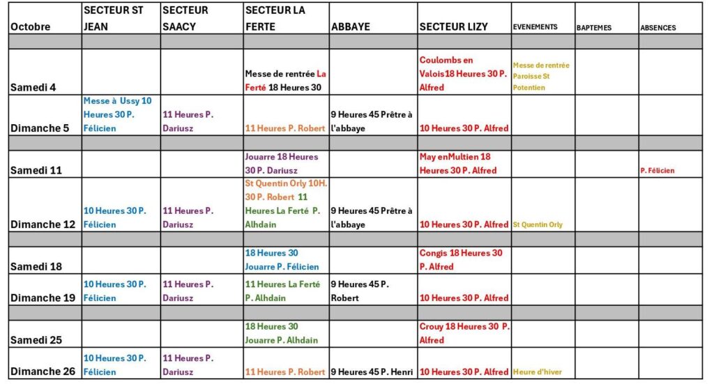 MESSES ET CELEBRATIONS OCTOBRE 2025
