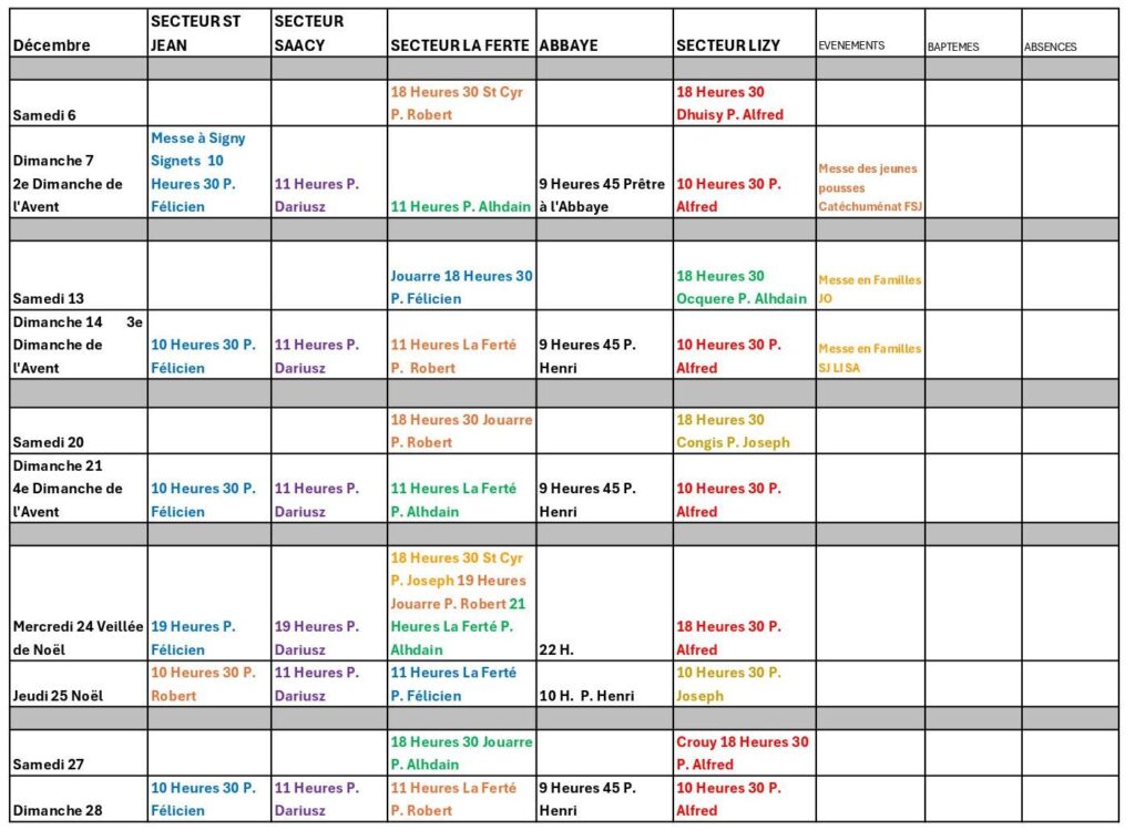 MESSES ET CELEBRATIONS DECEMBRE 2025