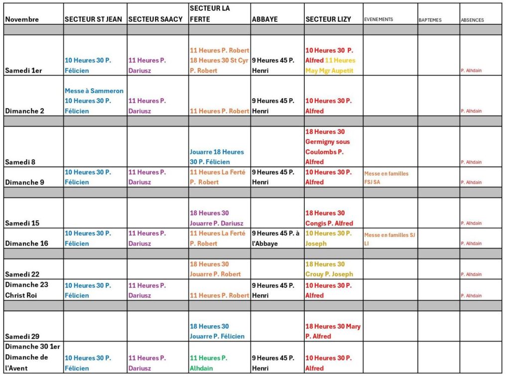 MESSES ET CELEBRATIONS NOVEMBRE 2025